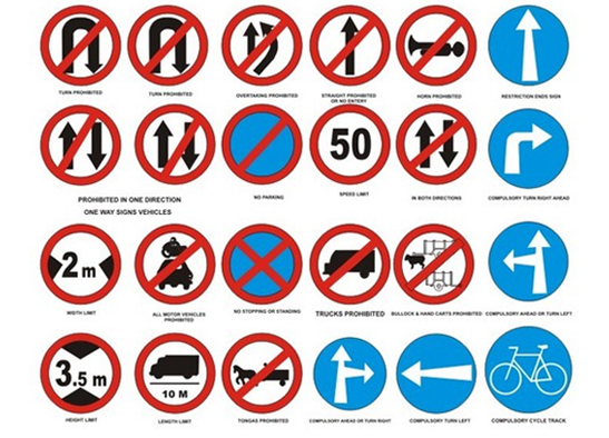 Road signs or road markings are the best indicator to the driver. There are so many traffic signs which can be seen on the road and it is very important for a person who is driving to know the exact meaning of these signs. These signs not only provide the advance information about road conditions ahead but also give orders, warning or guidance to the driver and sometimes they also saves time and help the driver to reach his destination easily.